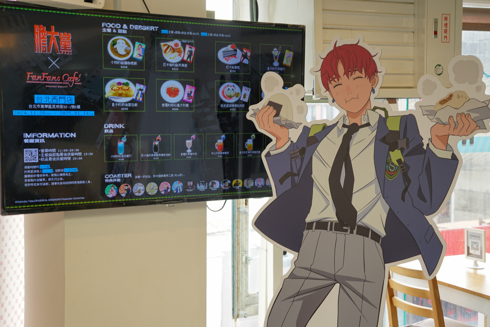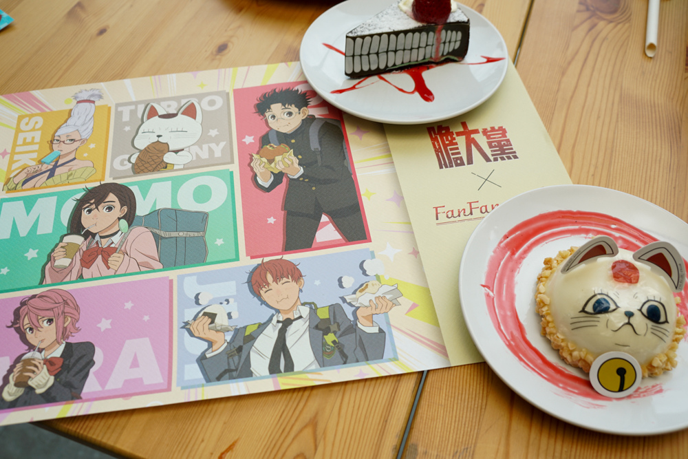 現正播映中的超人氣動畫《膽大黨》首度攜手 FANFANS CAFÉ,推出限時快閃主題咖啡廳,於 2024 年 11 月 28 日起在台北西門店和台中一中店同步登場。此次合作特別推出為首次台灣限定的繪製的角色立繪與周邊商品。