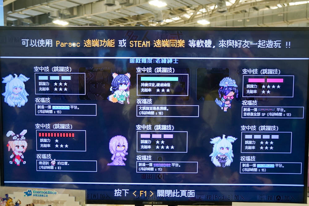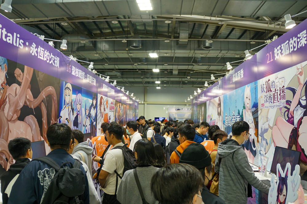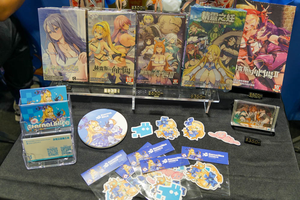 除了企業發行商攤位以外,還能看到台灣獨立開發者也展示了多款成人遊戲,推動成人遊戲進一步進入大眾視野,挑逗玩家的好奇心和感官,激發無限的探索慾望。剛發售的《下來吧!冰鳥》藉由現場展示多人競賽模式與單人故試玩法,將懷舊玩法的「下樓梯」結合逗趣劇情呈現在玩家面前,新創遊戲團隊「魅Production」展出《魔女不是這樣討伐的》以即時制的卡牌戰鬥為基底玩法。
