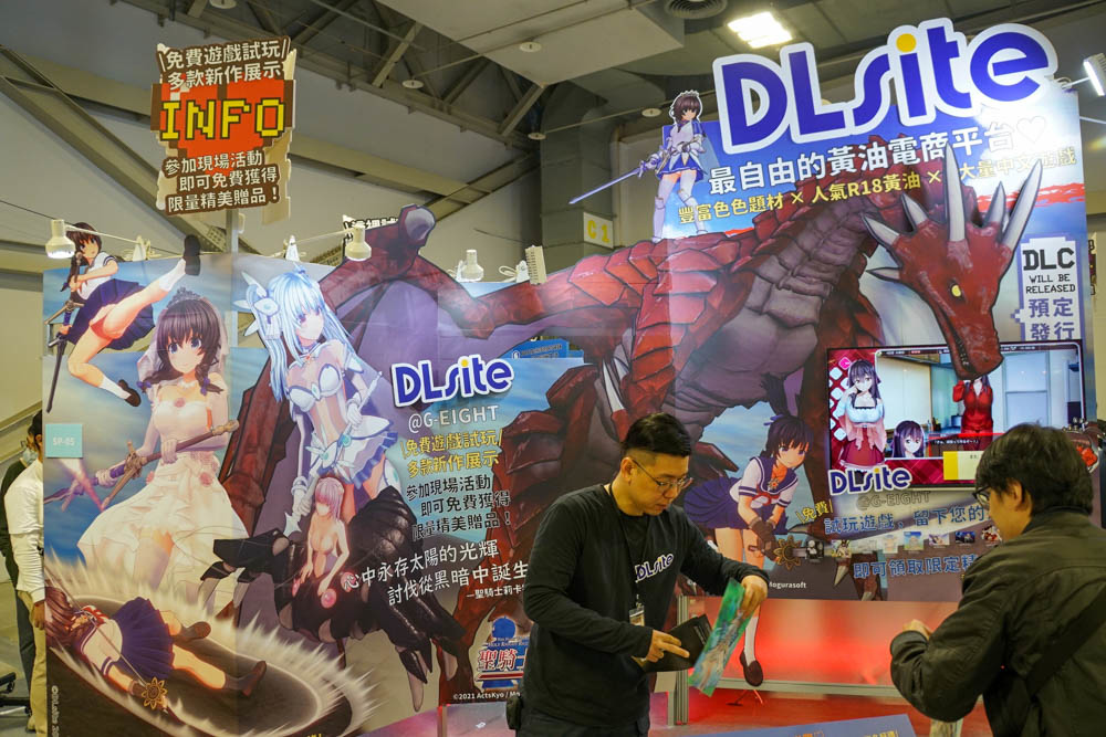 知名同人漫畫與遊戲平台 DLsite 攤位按照遊戲題材,提供輕食、重口與自由選玩等試玩區域,展出作品陣容強大,展出多款已發售的熱賣作品、開發中的人氣作品,以及尚未發售的潛力作品,讓玩家一次體驗多樣化的成人遊戲內容。現場提供與遊戲角色的互動環節,增強玩家的參與感和沉浸式體驗。