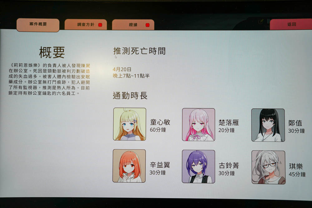 製作團隊表示,推理遊戲實質上是開發團隊與玩家在過招的情報戰,很好奇玩家會如何判斷目前的線索,在試玩版結束放了預測犯人的表單。只要到 Steam 商店頁面體驗試玩版,並填寫遊戲最後的QR Code,就有機會在遊戲上市後獲得正式版遊戲序號。截至目前只有一人猜到真兇是誰。