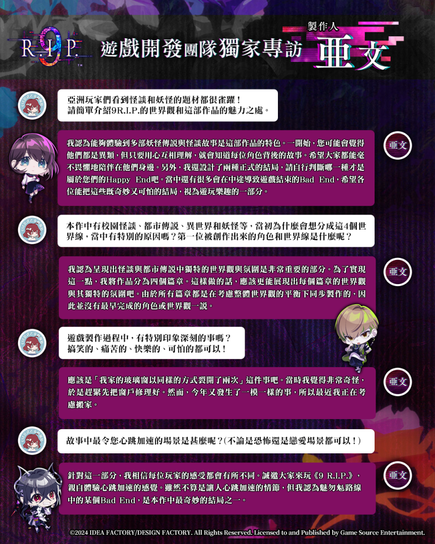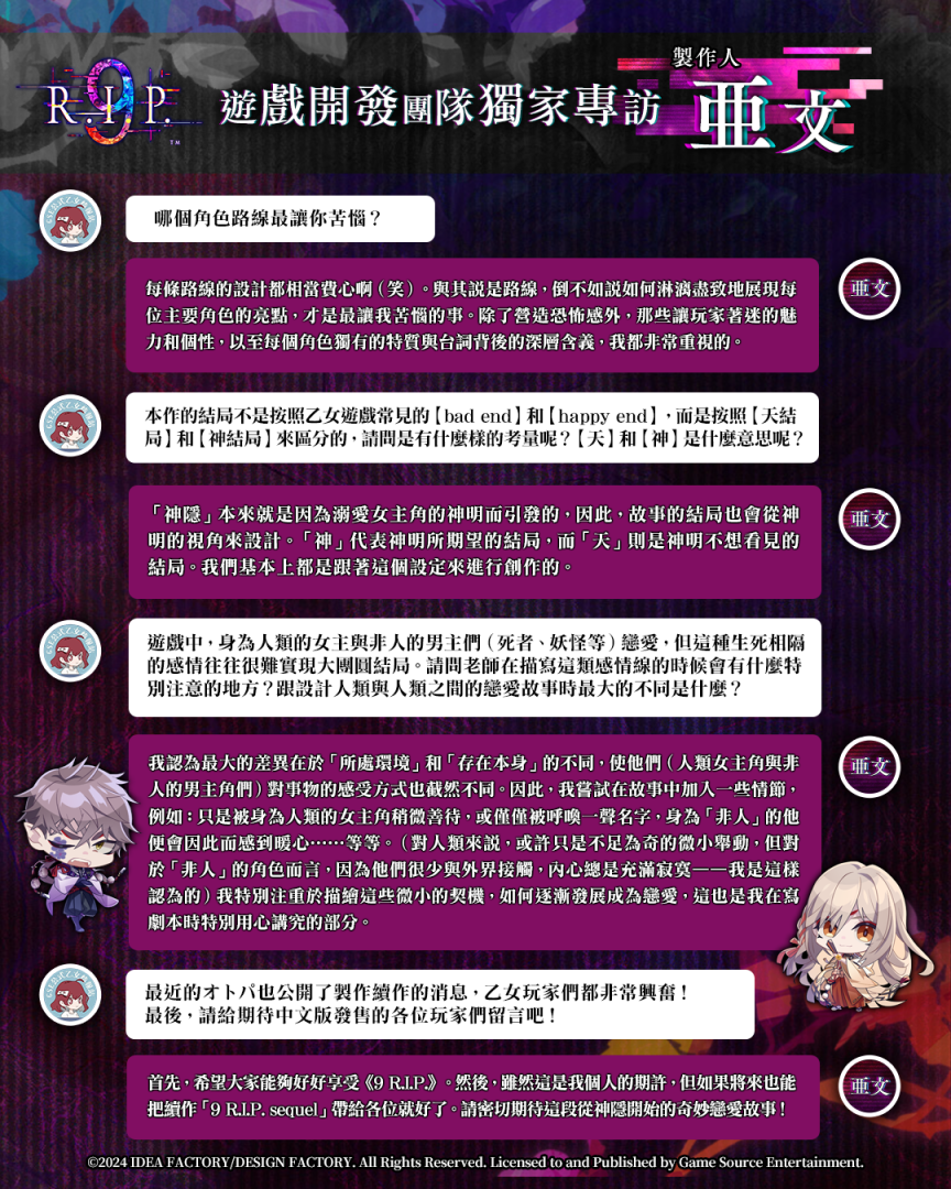 《9 R.I.P.》開發團隊獨家專訪——亜文老師(《9 R.I.P.》製作人)