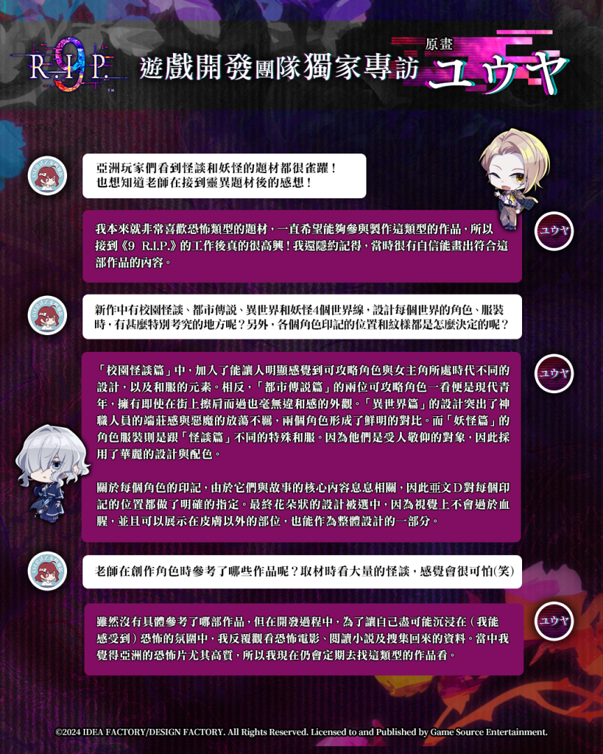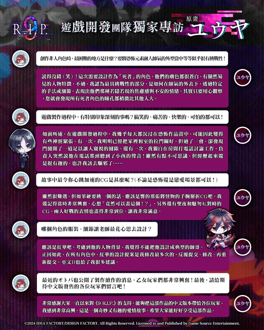 《9 R.I.P.》開發團隊獨家專訪——ユウヤ(Yuuya)老師(《9 R.I.P.》原畫)