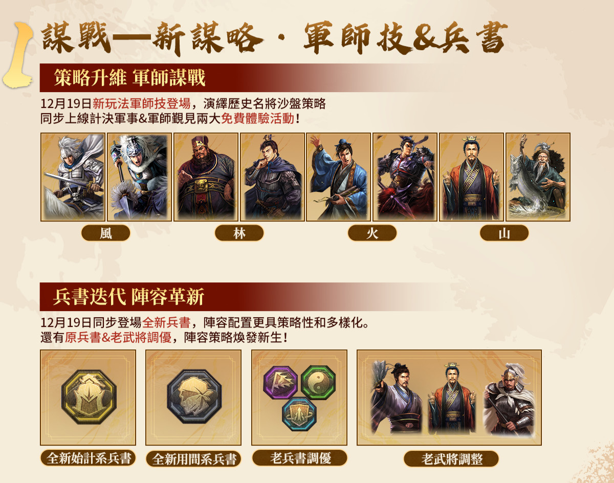 .「謀戰」方面,全新玩法「軍師技」來襲,策略全面升級;