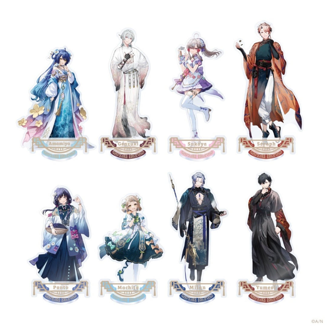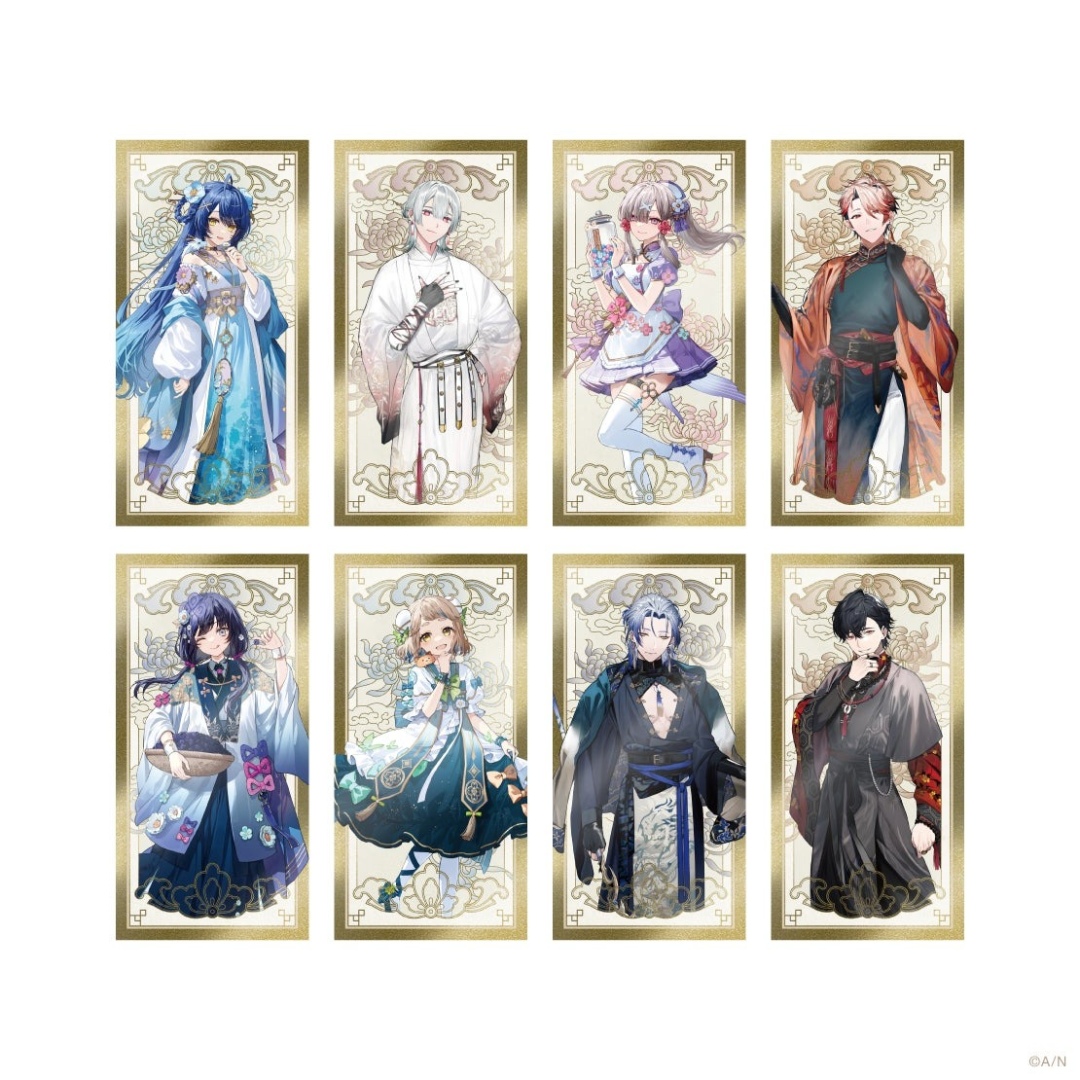 本次邀請到天宮心/弦月藤士郎/健屋花那/塞拉弗.達茲格登/先斗寧/町田千麻/Milan Kestrel/夢追翔等八名人氣 VTuber,換上中華風格的服裝造型盛裝登場,並邀請「ボダックス」與「久賀フーナ」兩位人氣插畫家繪製新的視覺圖,以此為基礎設計一系列周邊。商品陣容包含隨機繪卷風卡片/徽章/壓克力立牌/文件夾/刺繡吊飾/雜物小包/彩虹指娃娃衣(中華風造型)。
