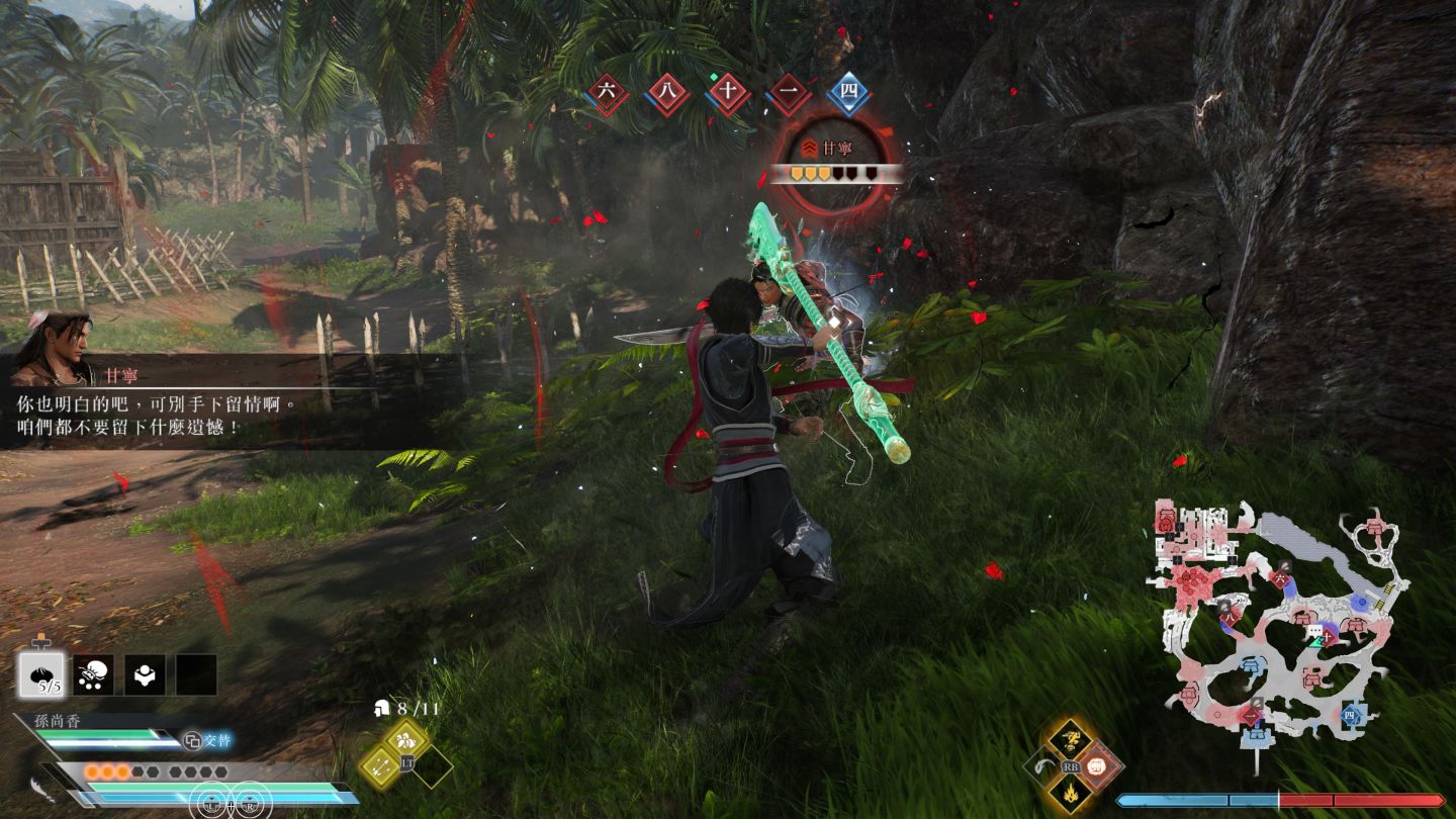 先前提到戰鬥系統明顯革新。不再無腦連打,彈反與閃避的設計迫使玩家不能再依賴單一按鍵輸出,而是需要針對武將攻擊的方式來應對,拓荒時如果不熟的玩家可以先從最低難度開始,然後才開啟無法部份完全防禦的正常難度,或者是挑戰防禦還會扣鬥氣值的更高難度。