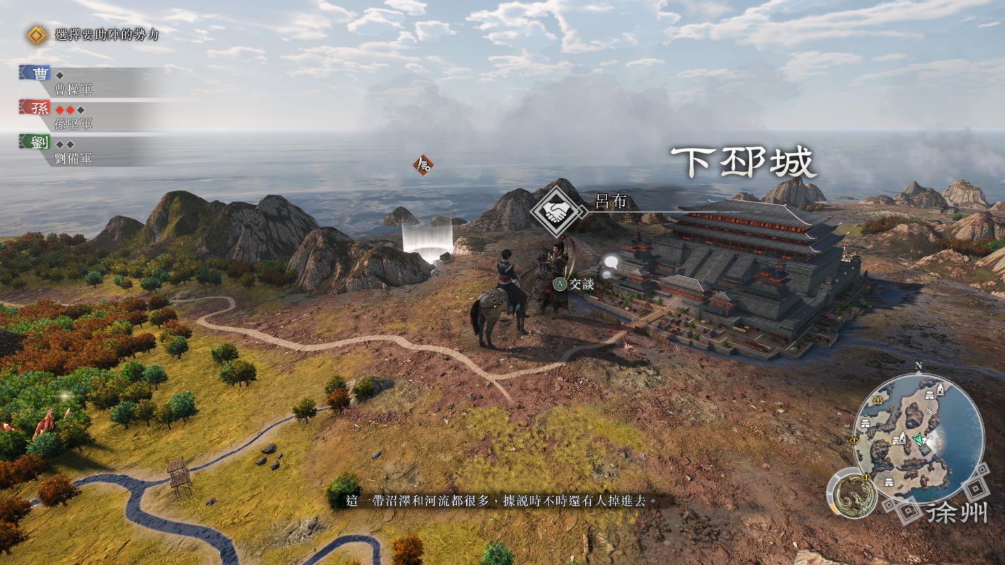 在上次的前期試玩中已經為玩家介紹本作品的基本變更特色,遊戲主軸聚焦於黃巾之亂到赤壁之戰的劇情描述,在汜水關至虎牢關後,陣營將發生改變,玩家將作為客座武將為劉、曹、孫三大陣營效力,一開始玩家還能作到三陣營都協力的狀態,但是隨著歷史推進,玩家會被迫「選邊站」,最終被導向固定陣營的發展路線。