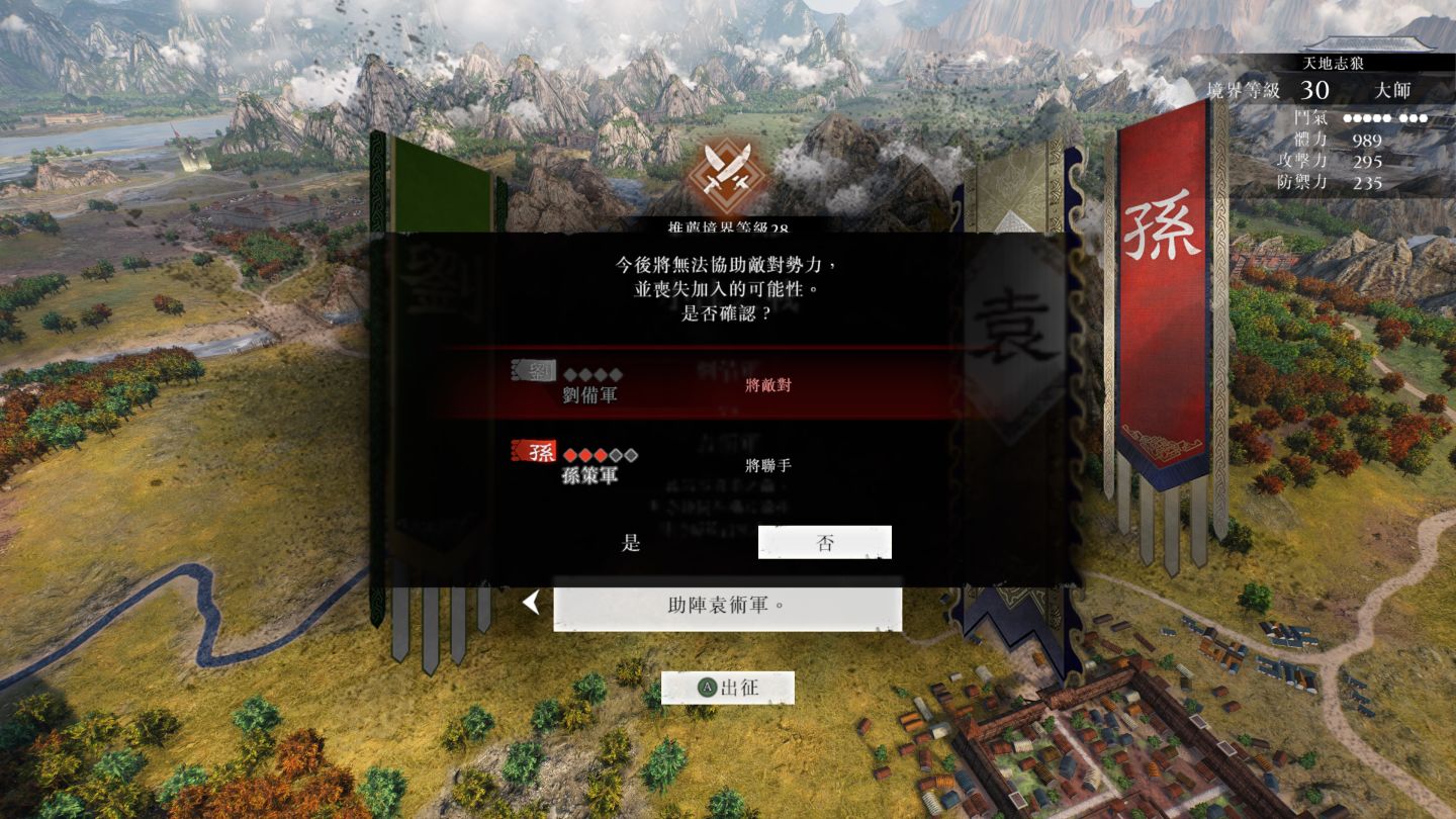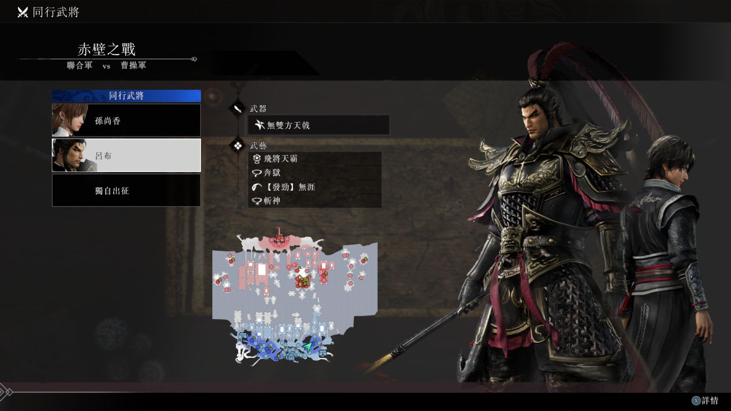 不過對於想要呂布打呂布的玩家可能就要失望了,本作在二輪模式的「自由武將」還是依照著史實框架進行,不該在此時出現的陣營武將、自由武將基本上還是無法選擇,就連呂布的參戰時間點與否也跟陣營的選擇有關,以孫家為例子,由於虎牢關後主要處理的都是家務事與南方內亂等級,要請出呂布幫打已經是到了袁術與赤壁的時間點。