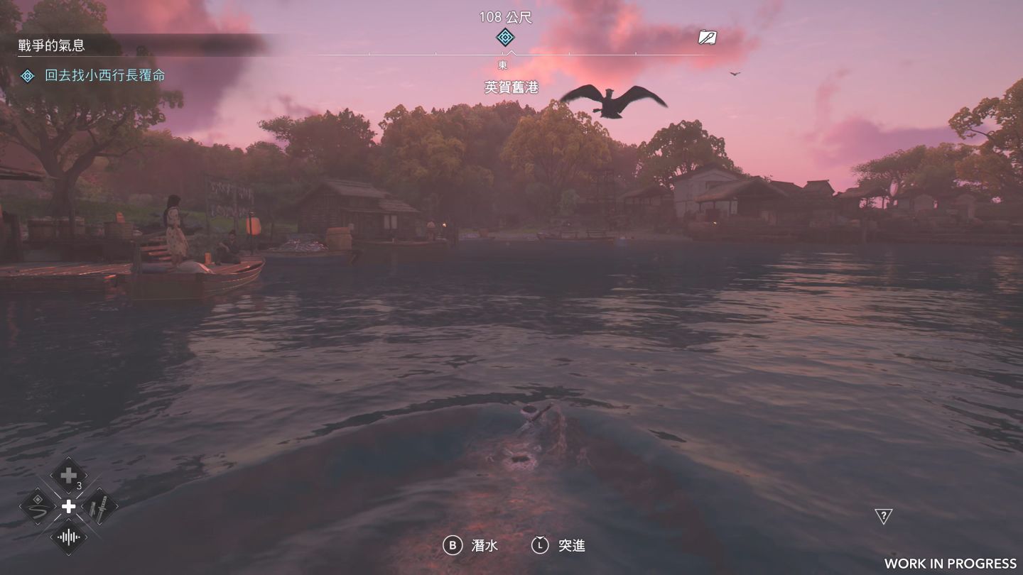 為了支援這些內容,《暗影者》採用了最新一代的水體技術,讓玩家可以無縫地從海洋航行到河流,甚至湖泊,完全沒有載入時間。團隊加入了像是光線追蹤與全域光照的技術,確保無論是晴雨天還是白天黑夜,水面的效果都與山脈一樣逼真。雖然彌助和奈緒江都是很好的泳者,但團隊更希望能為他們提供更快速的方式探索日本,因此設計了各種小型船隻,供玩家划行或奪取,讓任何目的地都能輕鬆到達。