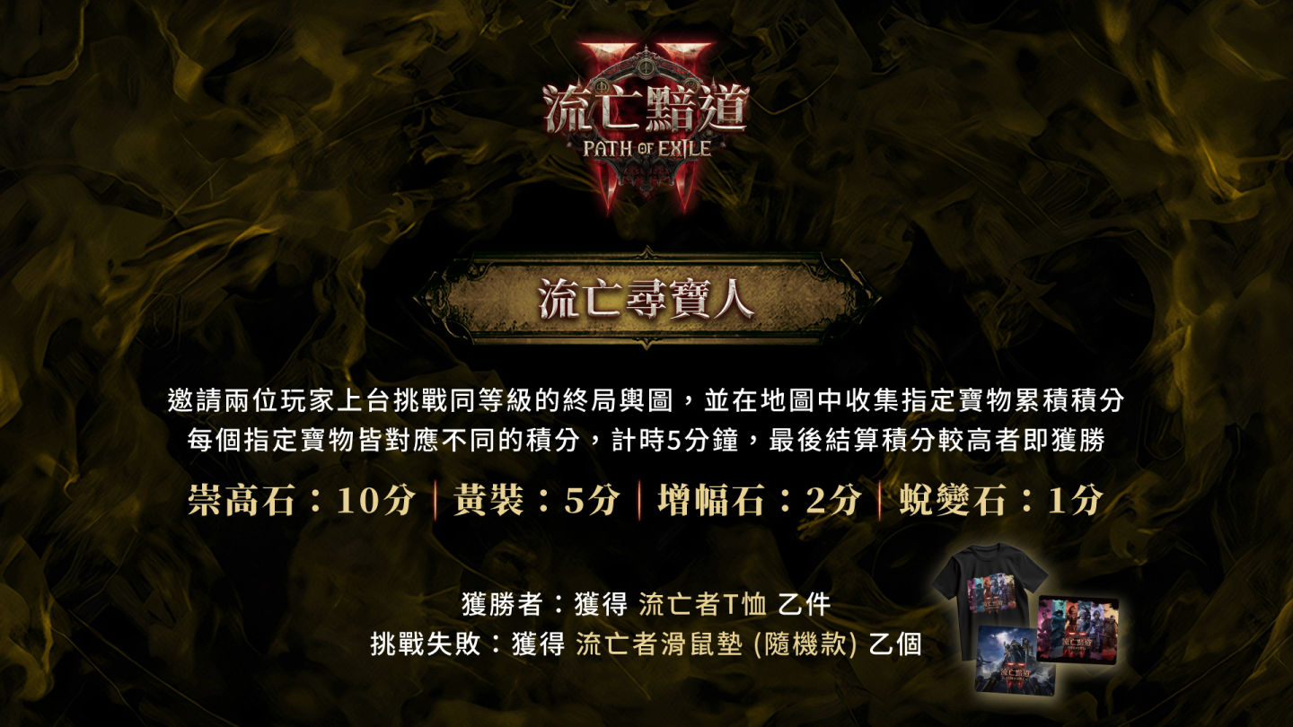 現場延續瓦爾克拉斯大陸黑暗詭異風格,打造「遊戲體驗區」、「拍照打卡區」及「互動舞台區」三大展區,除了可免費試玩《流亡黯道 Path of Exile 2》繁體中文版搶先體驗部分遊戲內容,為期四天的展期也將邀請 KOL 與玩家同樂,並規劃許多精彩舞台節目、體驗任務及限量周邊大放送,活動豐富多元玩家千萬不要錯過!