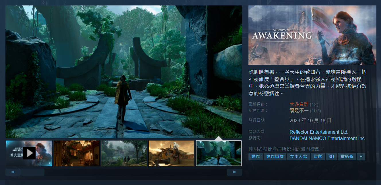 《無名九使 覺醒》是一款由 Reflector Entertainment 開發、萬代南夢宮娛樂負責發行,以第三人稱視角進行的敘事動作冒險遊戲,玩家所扮演的主角哈魯娜擁有名為「暗翳」的特殊力量,在前往神秘次元「疊合界」的冒險中她將致力於掌握這股力量,同時與名為「躍升者」的秘密組織對抗。