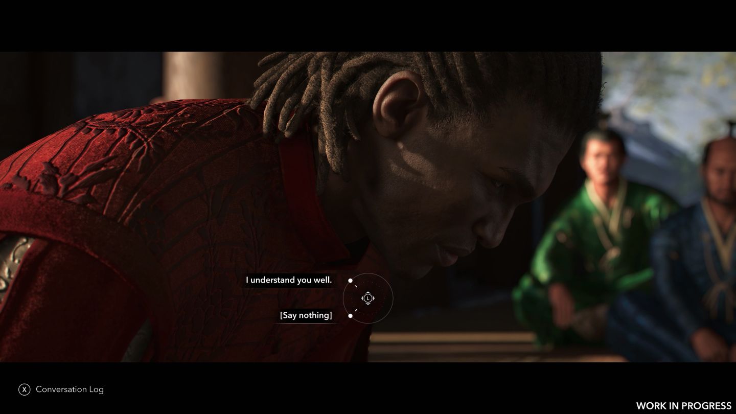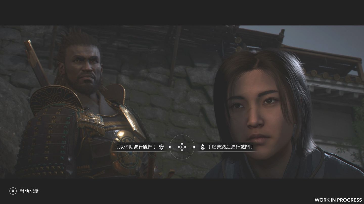 在開發版本中,嘗試使用奈緒江完成任務是完全可行,很有主角格,反觀彌助就像是一個人形立牌,出了什麼事情就是叫他等。如果對於彌助作為主角有相當違和感的玩家,可以採用這種方式進行遊玩,但是就像序章一樣,關於他獨有路線,玩家還是只能使用彌助,但是操作一個黑人武士大殺四方的畫面,還是讓人覺得相當魔幻,不過遭污染的 Animus 系統訊息曾標註「彌助」的記憶片段較為破碎,這是否暗示是段虛構的歷史?可能要等到正式版驗證才知道。