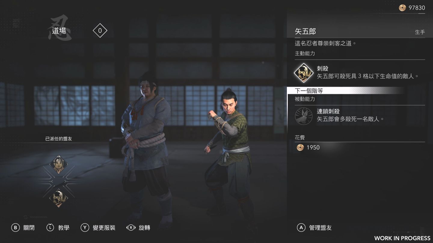 為了彌補戰鬥中的弱勢,奈緒江可以召喚幫手來協助對戰,這類似於《刺客教條:維京紀元》的維京戰團傭兵和《刺客教條:奧德賽》的副手功能 。 玩家還可以買下不少「藏身處」提供快速旅行等多種實用功能,例如補充口糧、工具與彈藥、存取裝備庫、接受與管理契約任務等 。「道場」的設置還能升級幫手的能力。