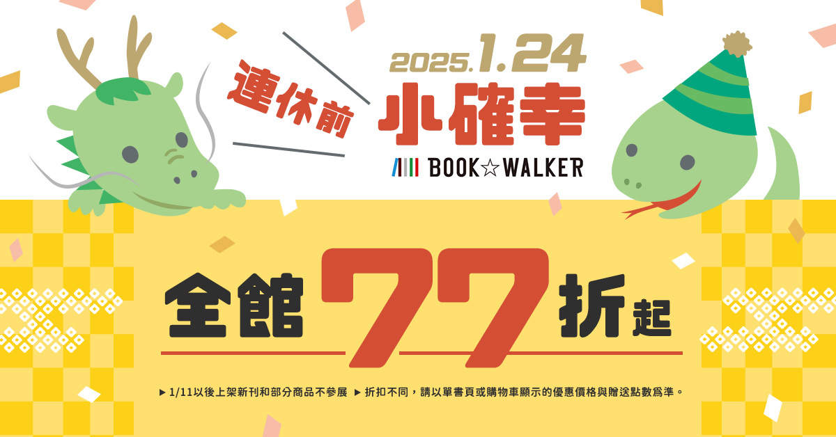 最後要為讀者帶來連休前的全館優惠情報,1 月 24 日將推出一日限定全館 77 折起活動!不論是為返鄉途中準備好讀物,或是想利用年假期間一口氣追上熱門作品的最新進度,都能趁著限定優惠清空心願清單。