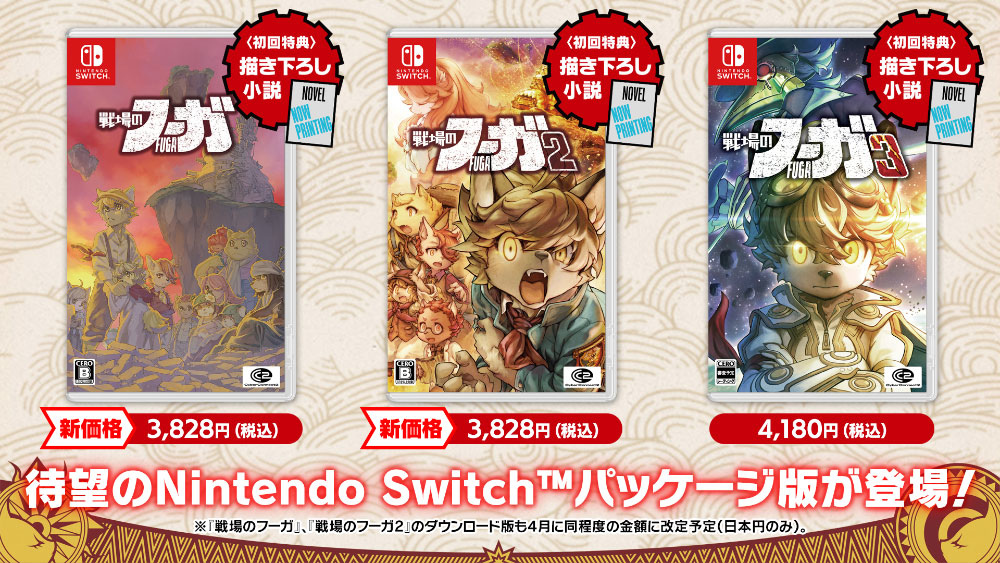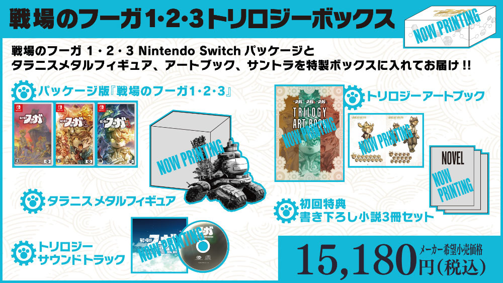 さらに待望のNintendo Switch™パッケージ版が登場!!#戦場のフーガ シリーズパッケージ版3本と豪華グッズがセットになったトリロジーボックスも同時発売。