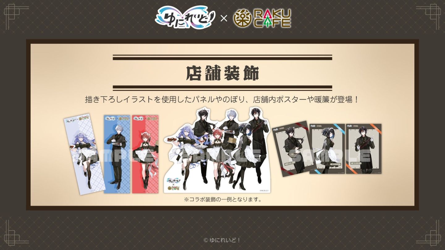 在本次活動中,「UNIRAID」的一期生公會「EINS」的六位成員神白ななせ/氷乃渚/花ノ木まる/黒花蘭/群青ロマン/扇名いだ將會換上服務生的造型登場,店內裝潢也會布置成 EINS 版本,並設置等身大看板供粉絲拍照留念。