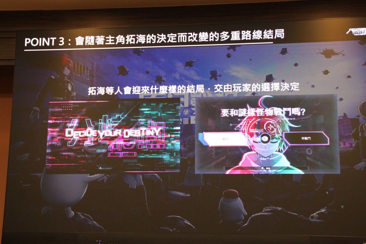 打越:基本上劇情量很龐大,因此大家不用擔心選錯進入壞結局。不過隨劇情進入最後,會有關鍵選擇,選錯才有可能進入死亡結局或壞結局。但在初中期並不用擔心會有這樣的問題。
