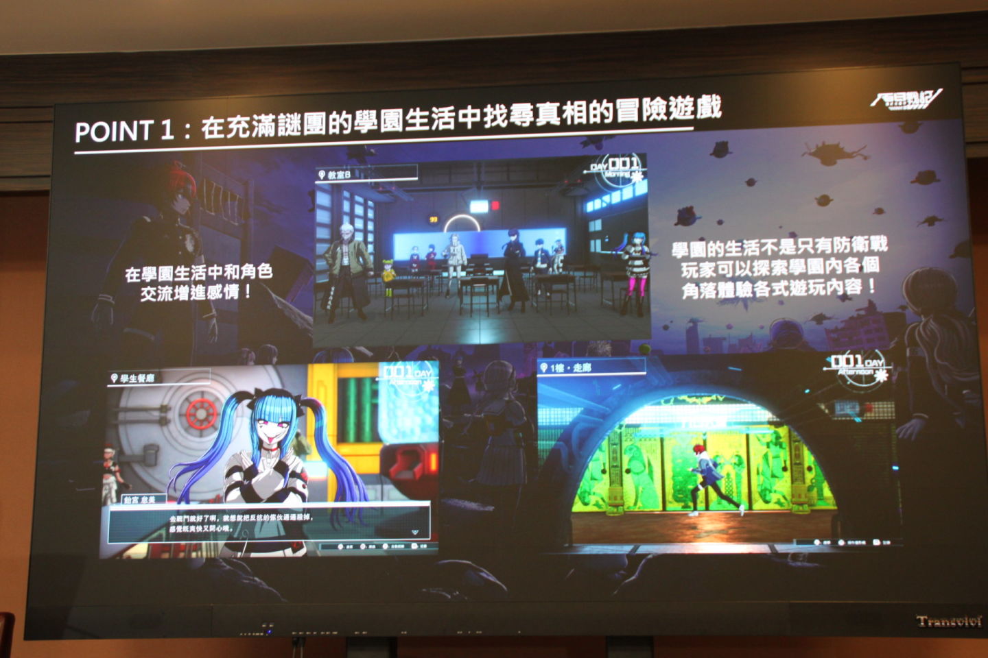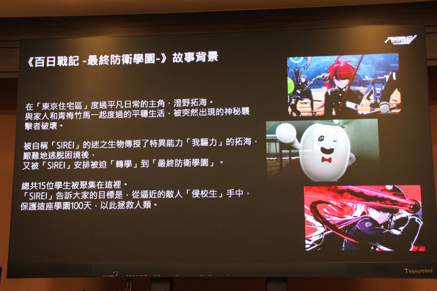 在活動一開始,首先由兩位製作人針對遊戲內容進行解說介紹,並為玩家們帶來遊戲實機展示遊玩。在本作中,主角澄野拓海原本的平凡生活,遭到突然出現的神秘襲擊者「侵校生」破壞。並被自稱「SIREI」的迷之生物傳授了特異能力「我驅力」。主角在「SIREI」的安排下「轉學」到「最終防衛學園」。而被聚集在這裡的 15 位學生,必須從「侵校生」手中,守護這座學園 100 天以拯救人類。