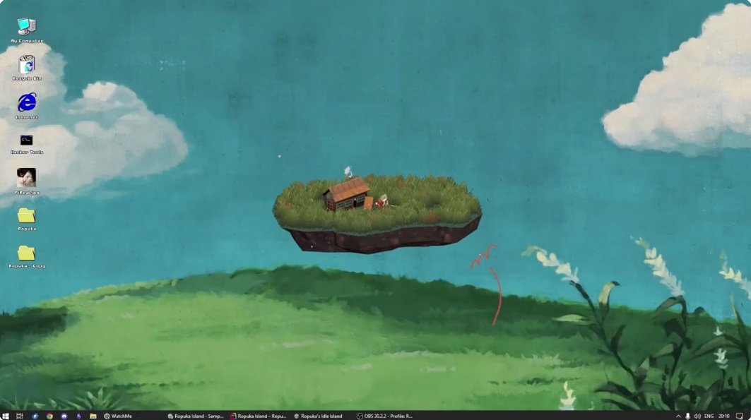 在這款以浮島為背景的放置遊戲中,一隻名為 Ropuka 的青蛙居住在這座浮島,牠悠閒的睡在自家房子前的椅子上,有時候會醒來將島上茂密的雜草割掉,玩家們可以邊欣賞 Ropuka 割草的模樣,或是投入累積的資源讓其割草效率提升。