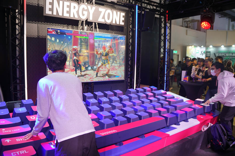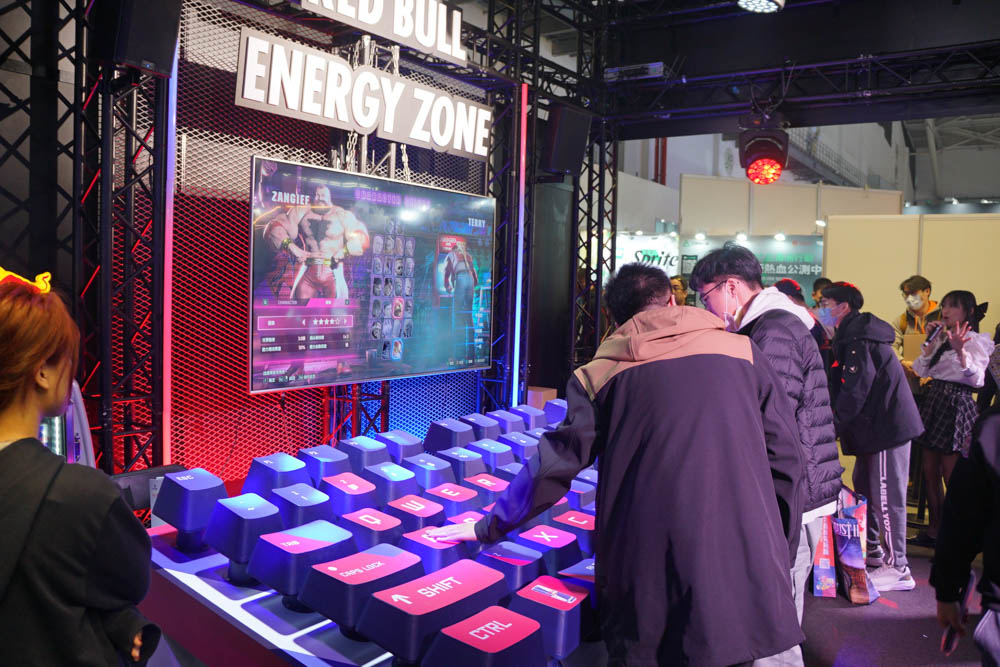 Red Bull 於 2025 台北國際電玩展「巨型鍵盤挑戰賽」,每日邀請知名電競選手擔任現場關主。玩家可兩人組隊使用長達 5 公尺的巨型鍵盤挑戰輸入指令,在《快打旋風 6》中戰勝職業選手獲得 Red Bull Kumite 禮盒獎勵。