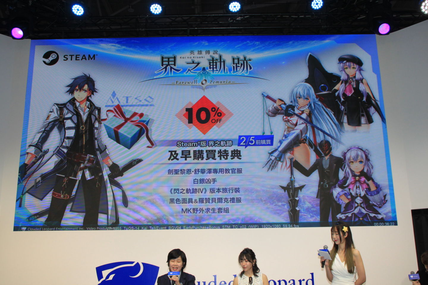而在今天舞台活動中,雖然 NIHON FALCOM 近藤社長因身體不適不克來台參加這次的台北電玩展,但雲豹娛樂陳云云社長與艾米莉亞聲優小見川千明還是親臨舞台,為玩家們帶來《界之軌跡》Steam 版的最新情報。