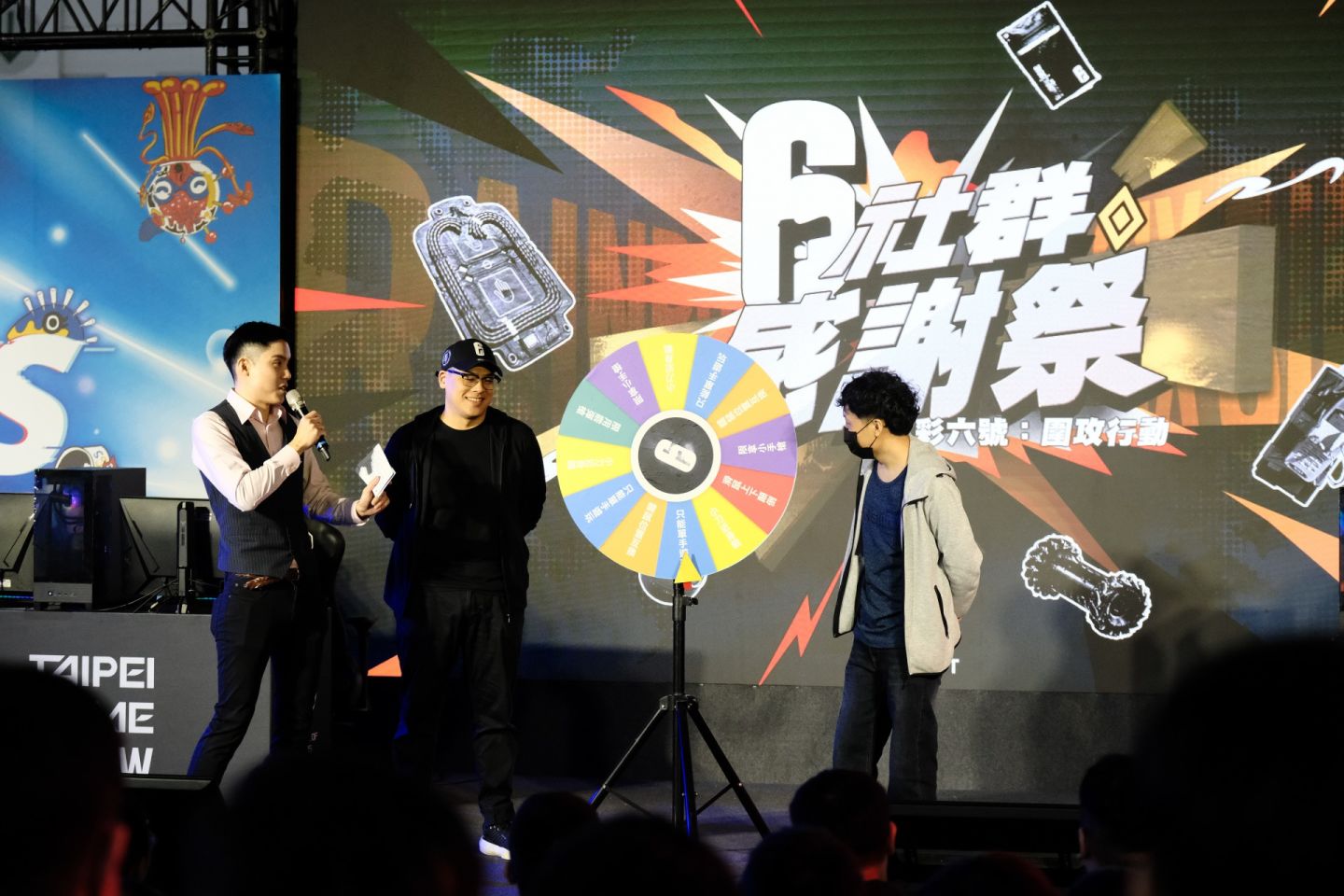Ubisoft 於 2025 年 1 月 26 日 在台北國際電玩展主舞台舉行了《虹彩六號》的「社群感謝祭」活動。本次活動特別邀請樂團「ArtnerdGames 藝級玩家」現場演出玩家熟悉的遊戲經典主旋律組曲,搭配《虹彩六號:圍攻行動》自 2015 年上市以來的發展軌跡回顧影片,展現遊戲八年間累積超過 8500 萬名玩家、推出 74 名幹員與 36 個賽季改版內容的輝煌成就。