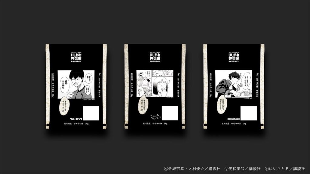 2024 年 1 月發生的能登半島大地震重創石川縣等地,同年 9 月又發生歷史性的暴雨,當地稻農們一直在處理艱難條件下存活的稻田已繼續耕作;該計劃以支援能登半島地震慈善事業為理念,旨在「盡可能讓更多的稻田復耕,盡可能拯救更多的稻農」,並與多部人氣漫畫合作推出名為「漫畫米袋」的產品。