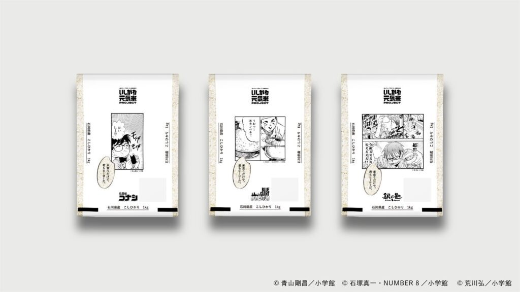 日本農業協同組合石川分部(JAグループ石川)為了支援石川縣的稻米農民,推出了「石川元氣米」計劃,由《名偵探柯南》和《ONE PIECE》等人氣漫畫與石川縣的稻農合作進行。