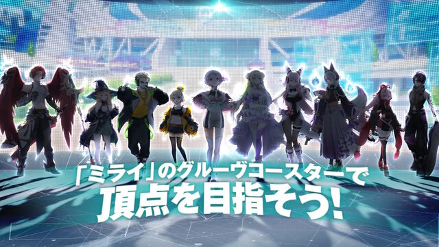 而在本作首創的故事模式中,玩家可以在 Mirai 世界裡欣賞以兩位主角「閃道カケル」和「氷芽川アリア」為中心,與同校的朋友、顧問老師和其他學校的對手以贏得「GROOVE COASTER」大賽優勝的故事,該模式中也收錄了為各角色和高中所創造的主題曲,並由川島零士和佐倉綾音兩位人氣聲優和來自 hololive 的白上吹雪與櫻巫女為主角群獻聲。
