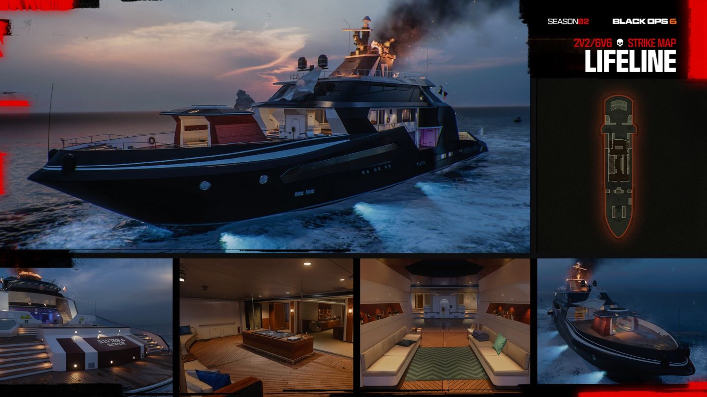 本賽季現已部署兩張中型核心 6 對 6 地圖「金海灣大樓」和「汽車經銷園區」,玩家可以沉醉在犯罪頭目奢華的頂樓套房中、在經銷商場所參與黑市交易,還能在提供 2 對 2 和 6 對6 模式的小型空襲地圖「搶救遊艇」中,迅速展開激烈的槍戰對決。