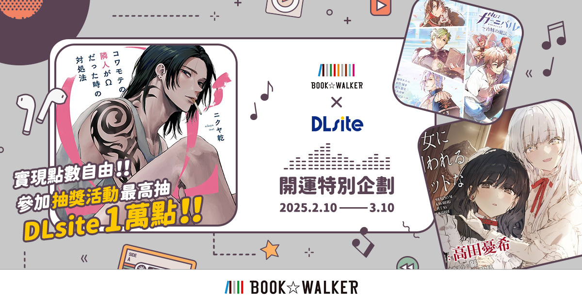 日本正版授權電子書平台 BOOK✩WALKER,於 2 月 10 日起與 DLsite 聯手推出新春開運特別企劃,立即到活動頁即可參加抽獎,活動至 3 月 10 日截止,每日皆有一次機會,讓你把 DLsite 萬元點數帶回家!