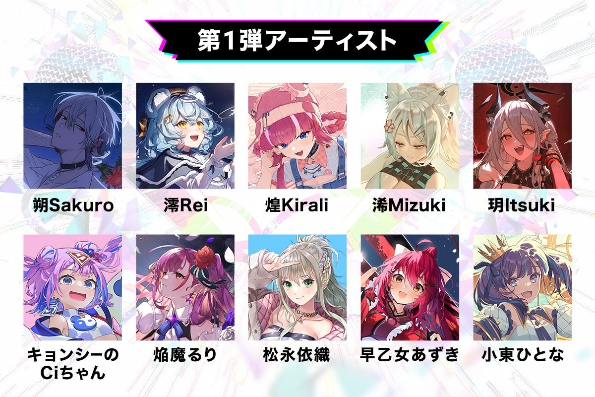 在今天公布的第一彈參與歌手中,台灣子午計畫所屬的「浠Mizuki」、「澪Rei」、「朔Sakuro」、「煌Kirali」、「玥Itsuki」等人將和日本的「松永依織」、「焔魔るり」、「キョンシーのCiちゃん」、「早乙女あずき」、「小東ひとな」同台飆歌,日後還會公開其他參與歌手敬請期待。