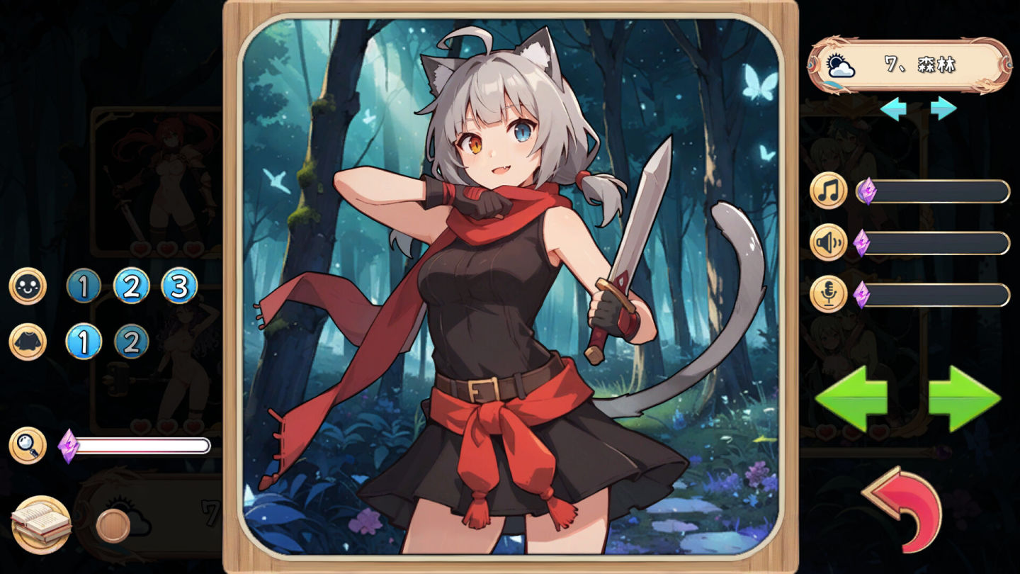 在畫廊裡有各種功能可以讓你更好地欣賞 CG!除了關卡內容,破關時剩餘心數越多還能解鎖更多的 CG 圖!一共有 80 張以上的靜態 CG 和 5 個動態 CG,以及更多的差分等著大家來欣賞!