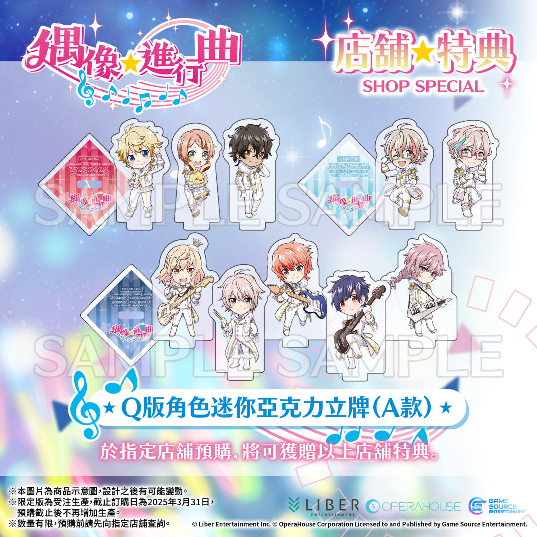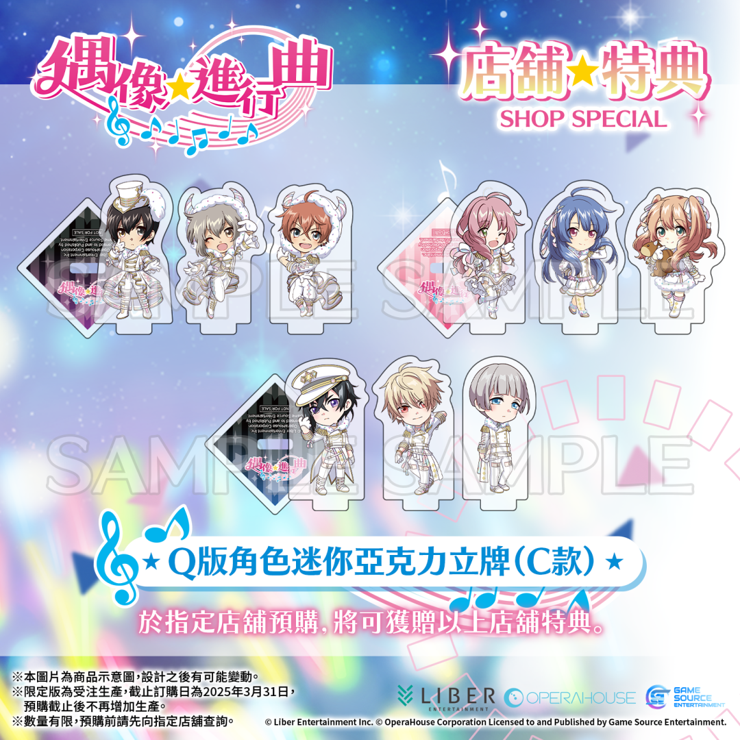凡於指定店家預購 通常版 / 限定版,可額外獲得特典 Q 版角色迷你亞克力立牌(A / B / C 款)。