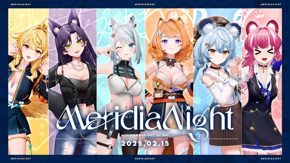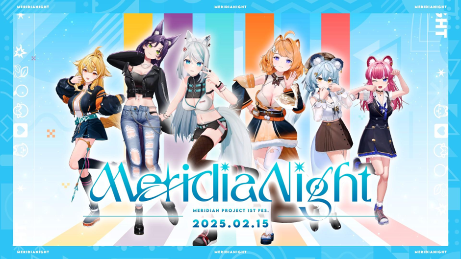 台灣 VTuber 企業 「子午計畫」 宣佈,旗下首場大型線上演唱會 「Meridian Project 1st Fes.『MeridiaNight』」 即將於 2025 年 2 月 15 日舉行,官方預告片現已公開。本次演唱會集結 浠 Mizuki、汐 Seki、響 Hibiki、澪 Rei、橙 Yuzumi、煌 Kirali 六位 VTuber,並將帶來多首原創與經典曲目,邀請粉絲一同參與這場聲光盛宴。