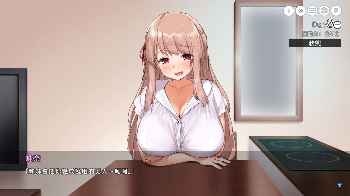 隨著唯奈對玩家的好感度提升,她也會主動地為玩家提供「更加舒服」的服務。不論是手淫、口交、乳交還是插入,姐姐都願意和你一起體驗,也可以在約會時購買服飾,讓姐姐穿上你喜歡的衣服色色喔!