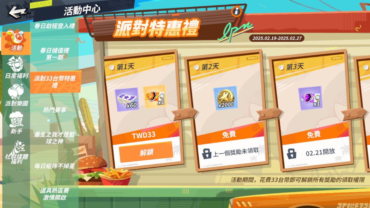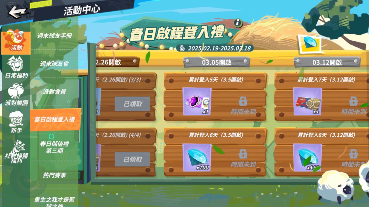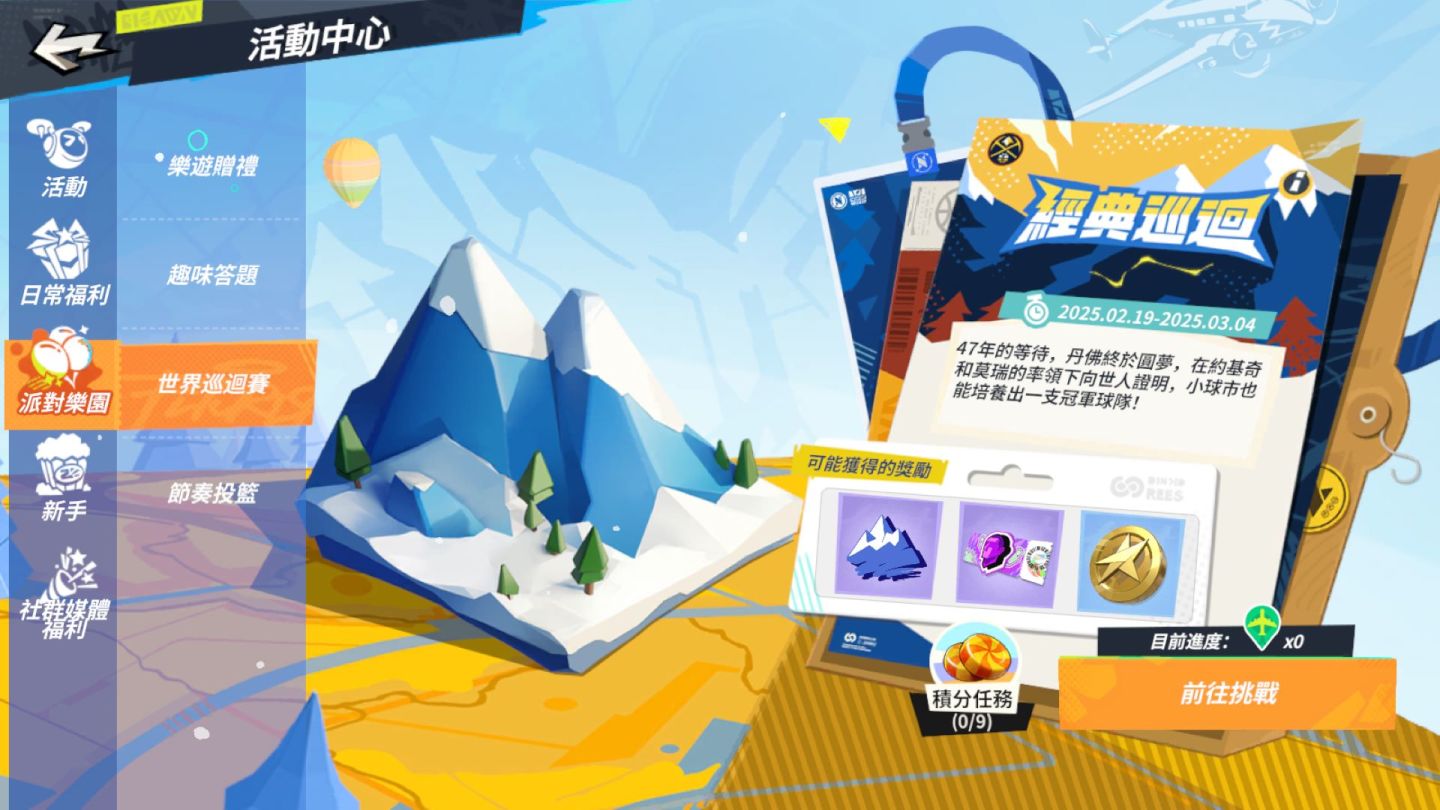 當然也有街球手們習慣福利活動啦!除了本次世界巡迴賽更新,帶街球手們一起前往丹佛,體驗約基奇與莫瑞在金塊聯手奪冠的傳奇故事外;也記得叫上你的球友們組隊挑戰——週末球友會等你領取群星雲集券、潮人券、鑽石等道具獎勵;春日啟程登入禮一樣讓你輕鬆又免費領取鑽石、群星雲集券、潮人券等虛寶福利。