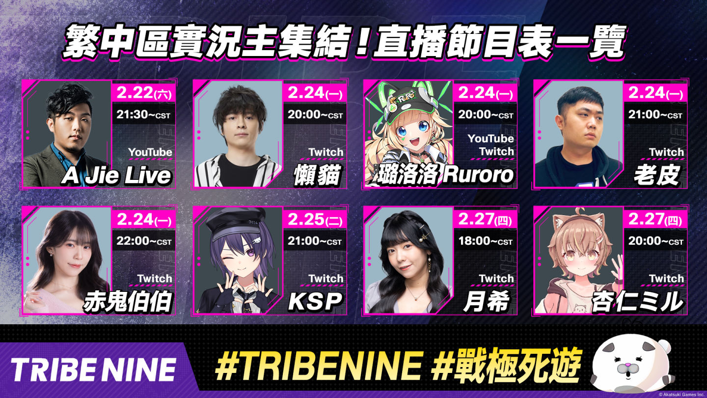 Akatsuki Games 與 Too kyo Games 共同打造的《TRIBE NINE》企劃,其同名 PC/手機遊戲《TRIBE NINE:戰極死遊》宣布,配合 2 月 20 日(四)全球同步上市,今日 2 月 19 日(三)起開放遊戲事前下載。