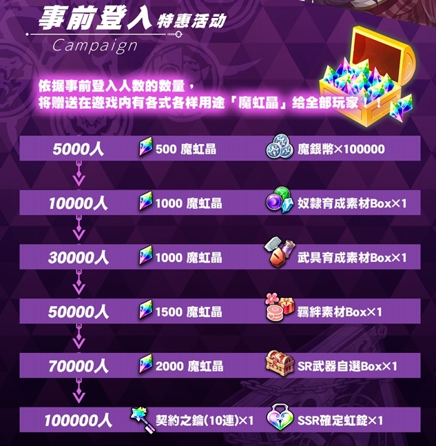 ・10,000人獎勵:魔虹石×1,000、奴隸育成素材Box×1