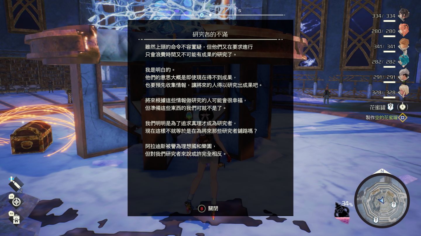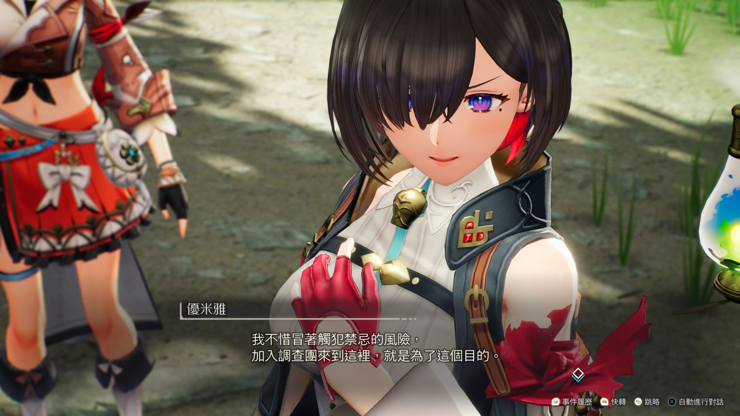 試玩版的節奏偏慢,除了開場的突入遺跡,前期的劇情鋪陳花了較長時間,主要是透過對話與探索「傳憶器」拼湊過去歷史來建立世界觀,相較《萊莎的鍊金工房》系列本作的氛圍比較沉重,少了那種日常的輕鬆感,但是主角優米雅本身的角色魅力逐漸累積,會讓玩家與調查團眾人同調,慢慢的喜歡上這位新一代的女主角,對於想要更有劇情深度的玩家來說是有加分不少的演出。