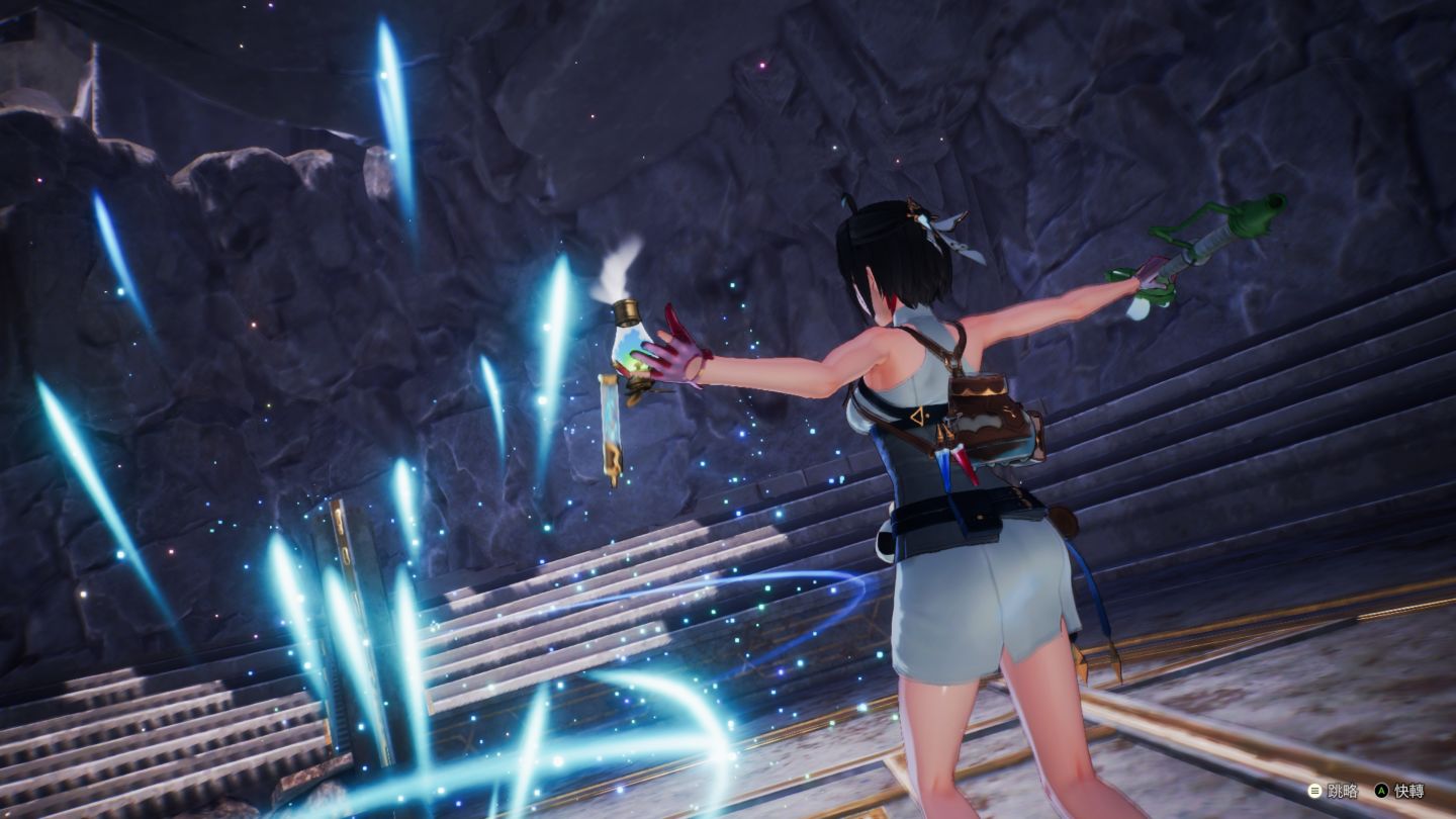 對比以往鍊金工房的戰鬥多半是回合制,到了萊莎呈現改良後的「半回合」,這次完全改為即時動作。優米雅可以在近戰與遠程模式之間切換,敵人攻擊時需要靠翻滾閃避或格擋來應對,搭配鍊金術裝備進行攻擊或輔助。新戰鬥系統的優勢是更直覺,戰鬥過程變得有動態感,但畫面特效點過於花俏了有時候很檔畫面