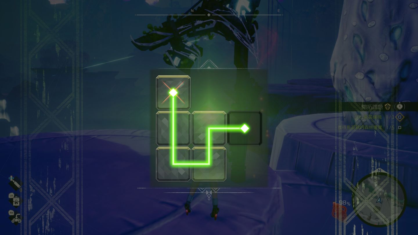 首度導入「垂直軸探索」機制,透過槍械採集與能量緩衝跳躍,實現多層地形無縫探索。地圖設計採用「遺跡錨點」概念,大型遺跡作為主線劇情節點,周圍散佈可選探索的小型遺跡群,每個區域都有固定的「開拓課題」要去完成,但課題的指引都相當清楚,依照指示花點時間,都能拿到 100% 的報酬,可惜的是 100% 的報酬子彈與環境中的障礙有相當大的關係,如果拓荒中受阻礙,很有可能跟子彈種類缺少有關,可以等事後再來補課。