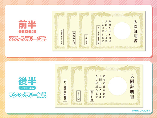 本次活動將分成前半與後半兩部分,並販售以全新繪製的視覺圖為主題的特別套票,內容包括限量版明信片和參加東京巨蛋城內蓋章拉力賽的景點門票;在遊樂設施,粉絲們可以欣賞到 VTuber 們全新錄製的語音,東京巨蛋城引以為傲的「Big-O」摩天輪也會裝飾成彩虹社版本,讓粉絲們能在搭乘時欣賞到每個組合獨特的語音。