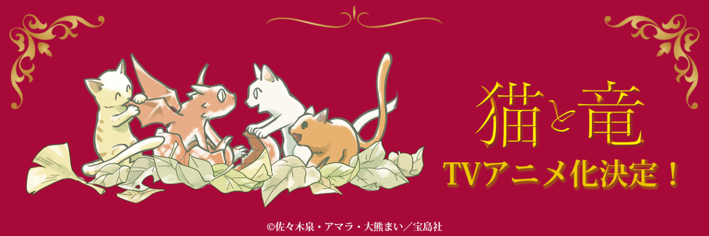 アマラ原作、大熊まい擔任小說插畫、佐々木泉負責漫畫版作畫的奇幻作品《貓與龍》(猫と竜)於今(22)日宣布改編電視動畫,同步公開由動畫化特報影片和大熊まい與佐々木泉的賀圖。