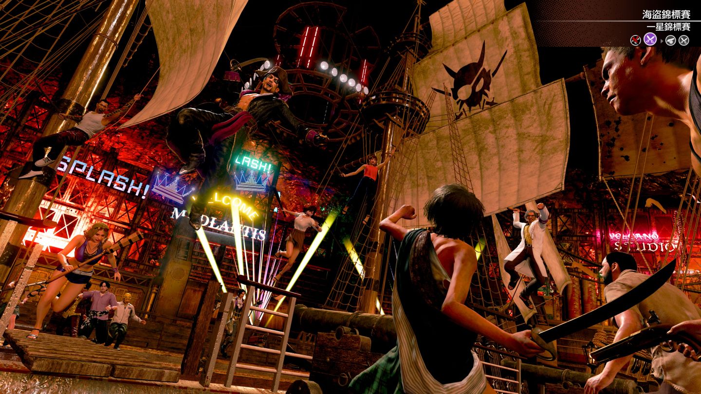 配合本作主題新增的「海盜模式」則是機體相當好,而且有群戰大招的風格,主要以雙刀群戰以及各類海盜道具,有點像是《人中之龍 7 外傳》的特務模式進化,加上本作的尋寶主題,可以透過在群島航行發現不同的海盜道具來使用,不過最強力的海盜道具藏在後期支線中,如果沒有好好逛遍地圖,能使用的機會反而變少了。