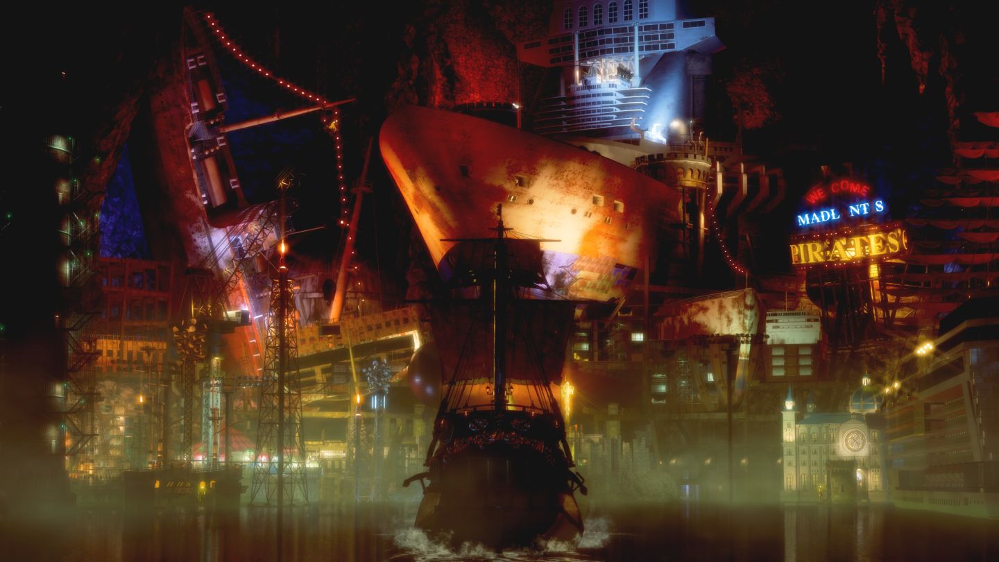 場景再利用,對於正傳玩家可以看到半年後的夏威夷成員發展,算是粉絲福利的部份。新增的大地圖「瘋狂蘭提斯」則是由數十艘報廢油輪堆疊而成,形成鋼鐵叢林般的立體迷宮,但實際上提供的玩法類似於《七外》的貨櫃不夜城,有許多賭場小遊戲在此進行。
