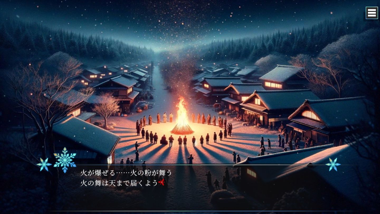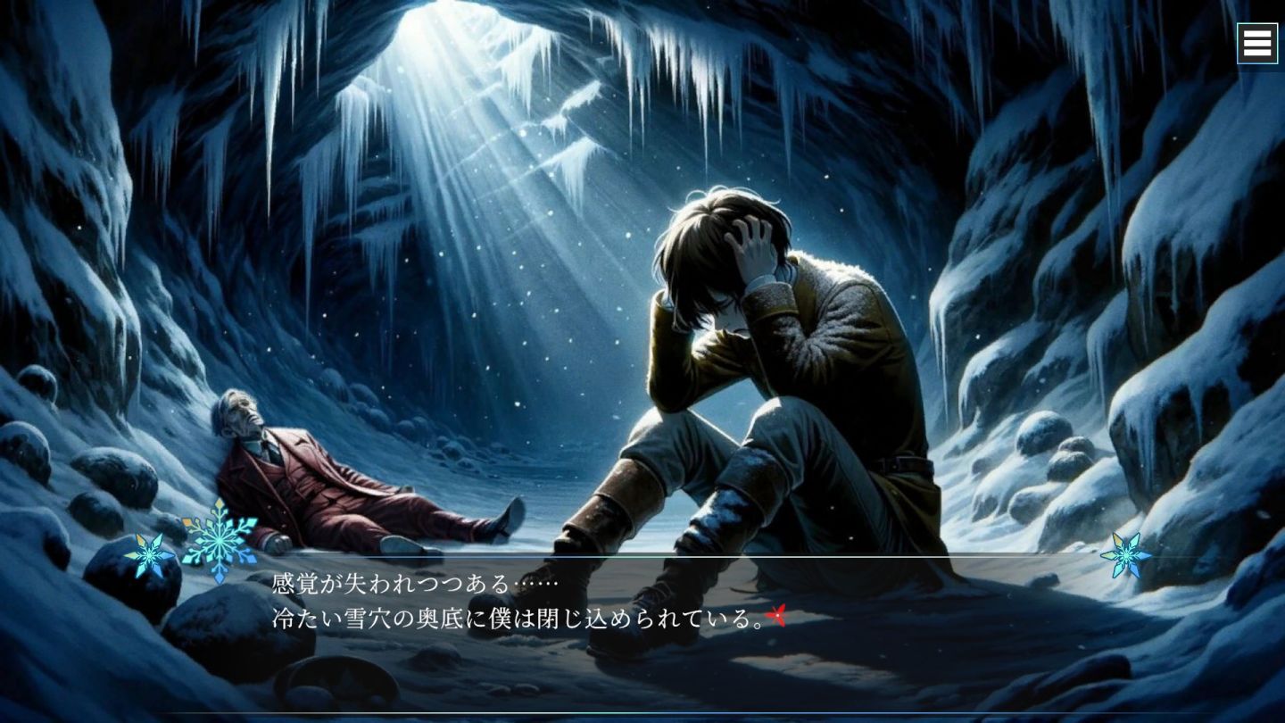 本作是一款略帶恐怖元素的懸疑小說遊戲,描繪了三男一女被困在雪山中,與潛伏在雪山黑暗裡的人或物對抗的故事。故事開始時,名為瞬的男子在一個雪洞中醒來,不知為何被困在此處的他,被夢中出現的「火祭祀」幻象折磨煎熬著,而他感覺附近有什麼存在時,看到的卻是一名男性的遺體...