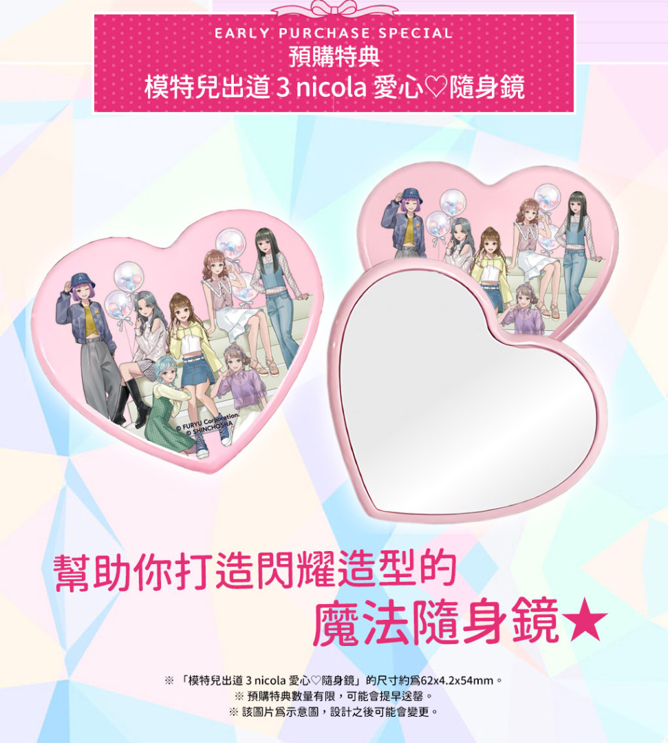 實體盒裝版預購特典:「模特兒出道3 nicola愛心♡隨身鏡」