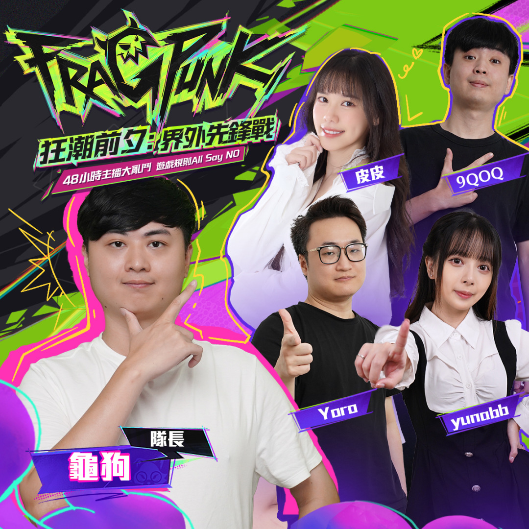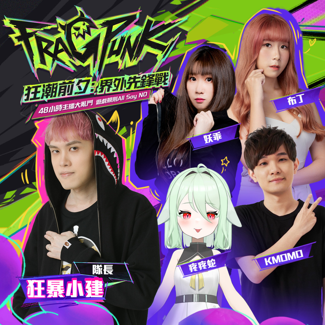 《FragPunk》先遣伺服器服本次邀請到 20 位知名台灣實況主搶先開戰,將由凱琪、狂暴小建、殺梗、龜狗四人擔任隊長,分別率領四支隊伍進行實況廝殺,四支隊伍將從 3 月 3 日至 3 月 4 日進行直播熱身,展演本次先遣服全新玩法與卡牌內容,並於 3 月 5 日至 3 月 6 日正式展開「狂潮前夕:界外先鋒戰」的主播大亂鬥直播節目。