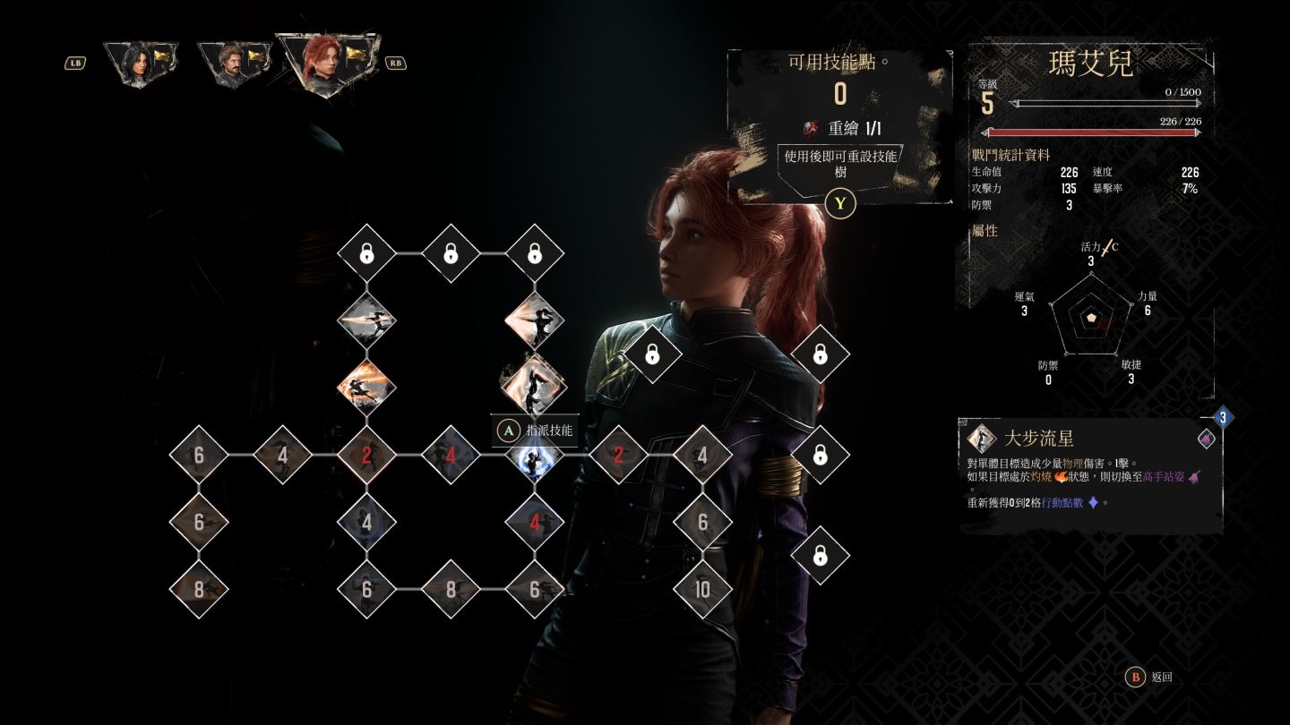 遊戲中的主要角色,如古斯塔夫與瑪艾兒,組成了遠征隊的核心成員。每位角色都面對著生命倒數的困境,這使得劇情充滿了緊迫感。然而試玩版的長度有點難讓玩家完全進入劇情共感階段,你得在營地休息的時候多找找成員對話,看看有沒有關於他們之間的關係建立過程,找尋共鳴感。