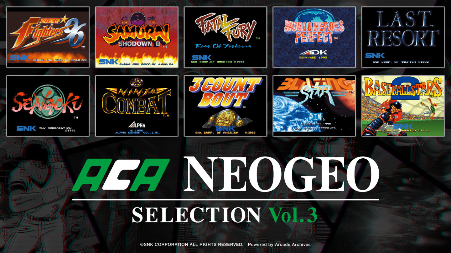 株式會社 SNK 宣布,收錄了從「NEOGEO」名作.傑作之中精選的 10 款作品合集《ACA NEOGEO SELECTION Vol.3》、《ACA NEOGEO SELECTION Vol.4》,兩款遊戲的 Nintendo Switch 實體版將於 2025 年 4 月 10 日(週四)同時發售。
